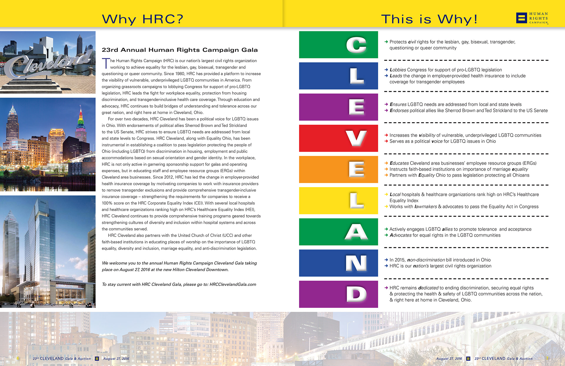 Cleveland Human Rights Campaign 2016 Gala Program: cover & inside spread